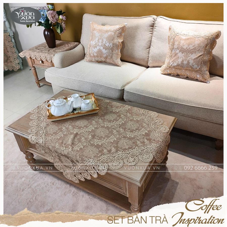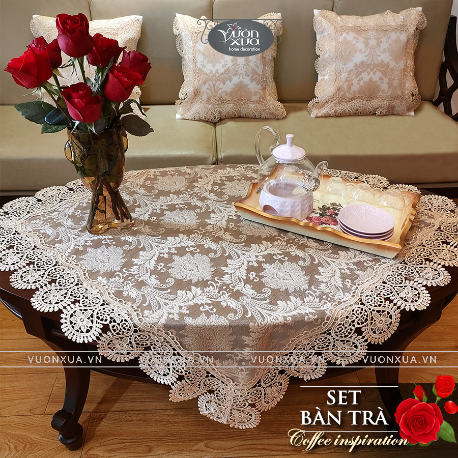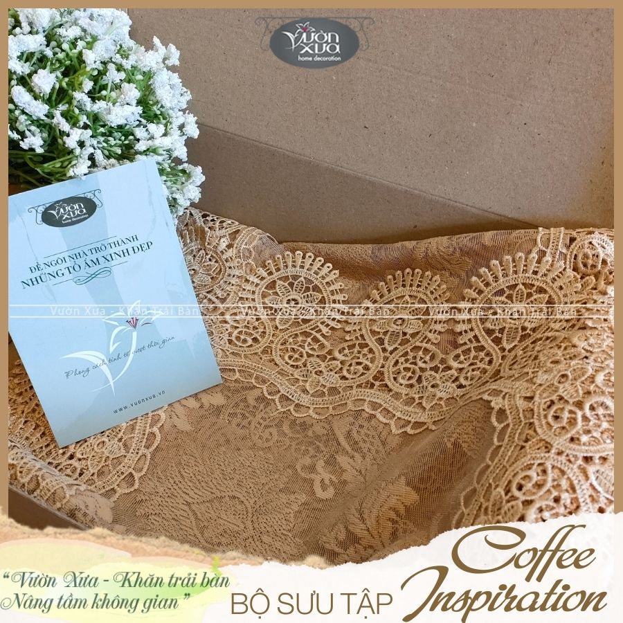Khoác lên nội thất nhà mình - Set Khăn Trải Bàn "Coffee Inspiration" Vải ren mềm màu be cafe sữa ngọt ngào. Hơn cả đẹp, đó là sự thoải mái, là phong cách của chính bạn. Đủ kích thước cho mọi loại bàn.