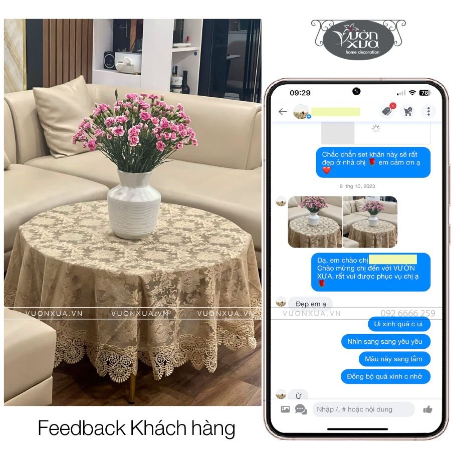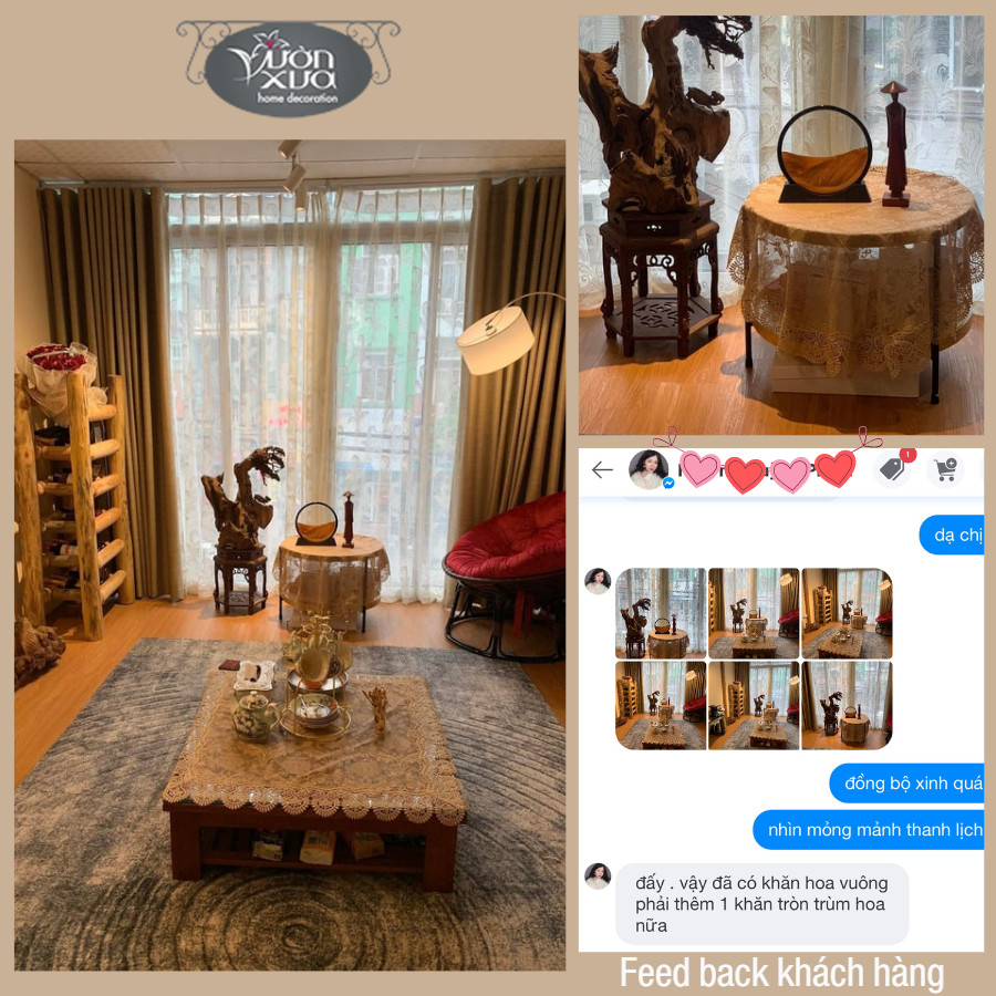 Khăn trải bàn trà bằng vải ren mềm vừa sạch vừa sang, là món phụ kiện làm đẹp cho bàn trà & phòng khách. Nơi hội tụ gặp gỡ bạn bè, người thân cho đến họp mặt với đối tác, đồng nghiệp.