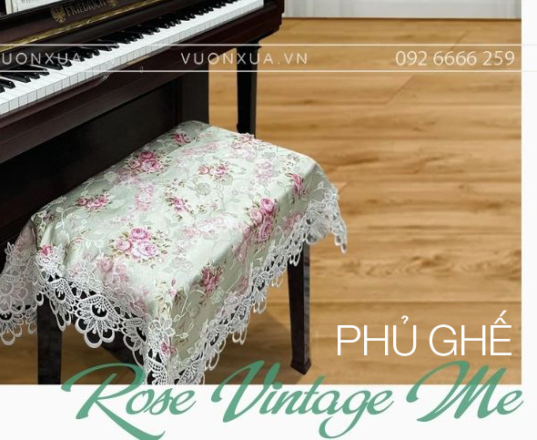 Khăn phủ Ghế, cho đàn Piano hoạ tiết hoa hồng vintage thanh lịch