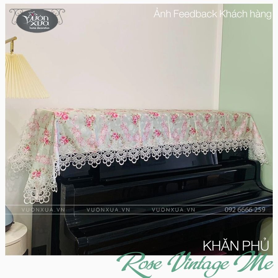 Khăn phủ đàn Piano hoạ tiết hoa hồng vintage thanh lịch