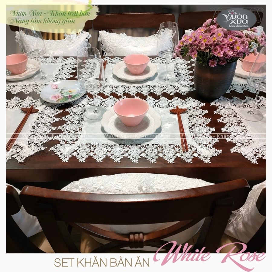 BST KHĂN TRẢI BÀN ĐỒNG BỘ "WHITE ROSE"